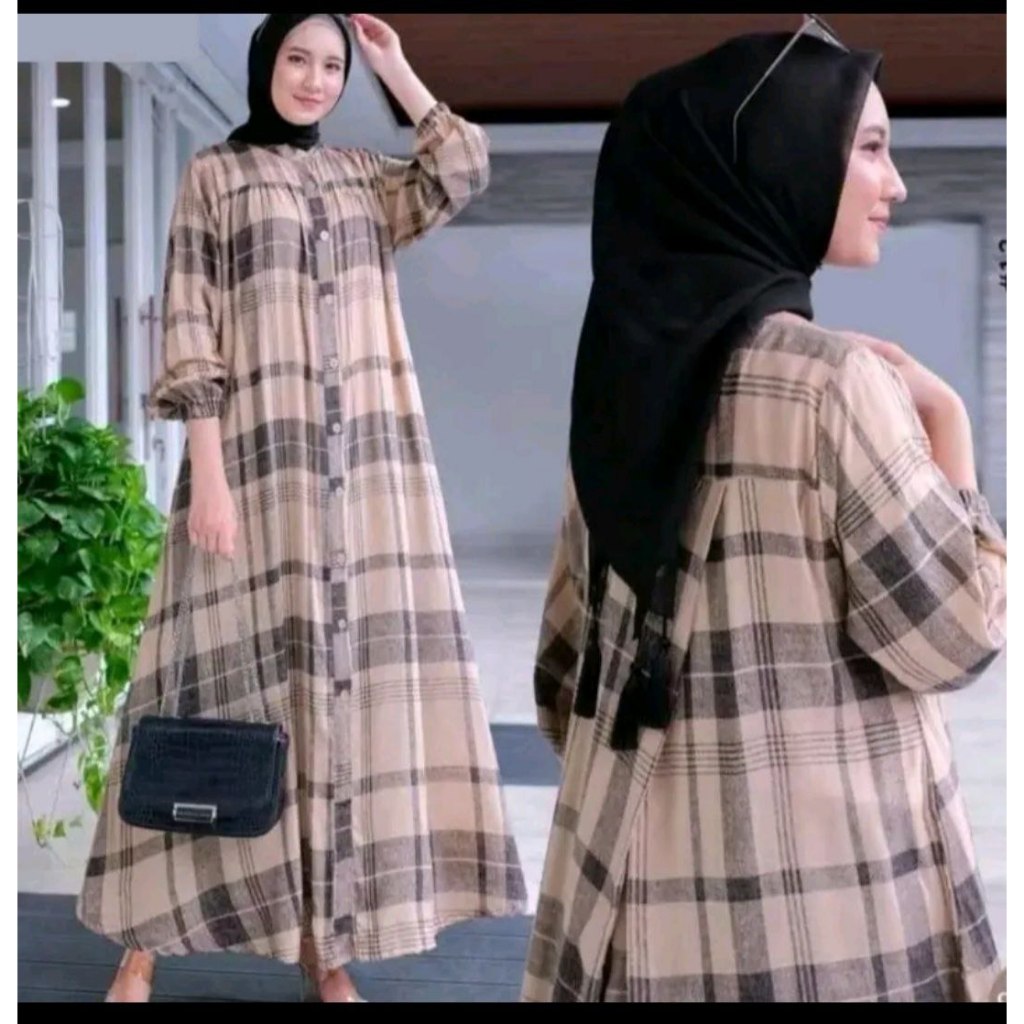 Gamis Gauri Motif Kotak Bahan Rayon Diamond Adem Halus Tebal