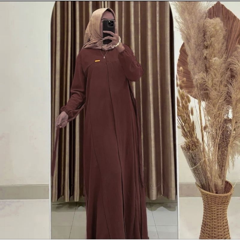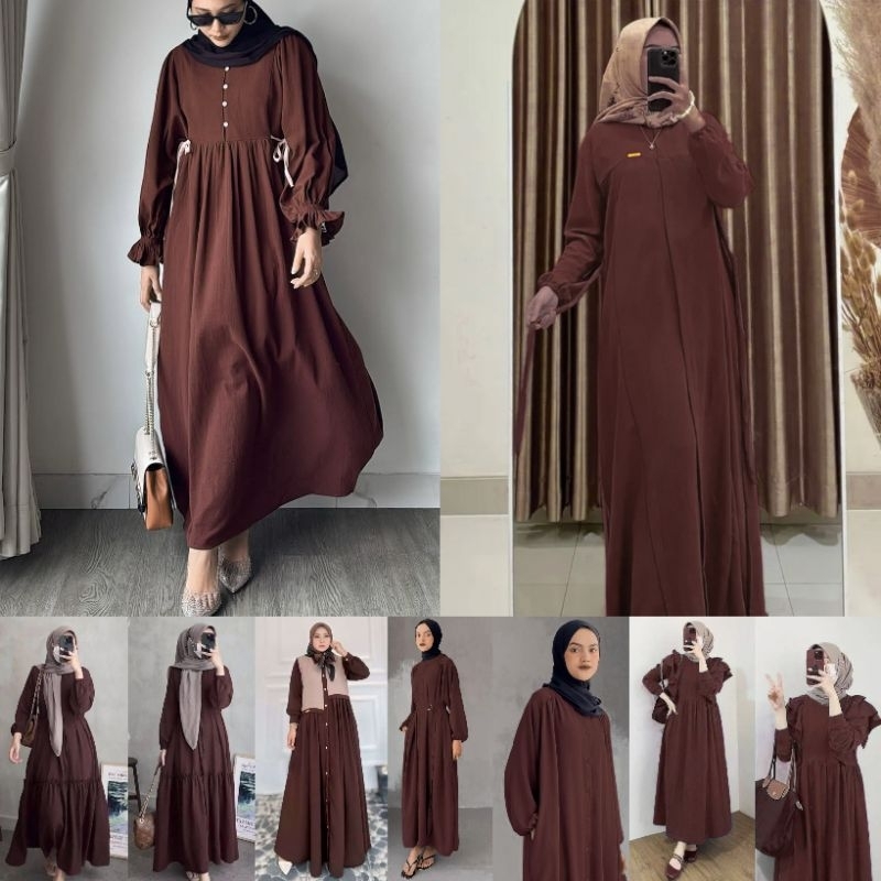 [ Spesial Mahogany ] Gamis Edisi Warna Mahogany Crinkle Airflow