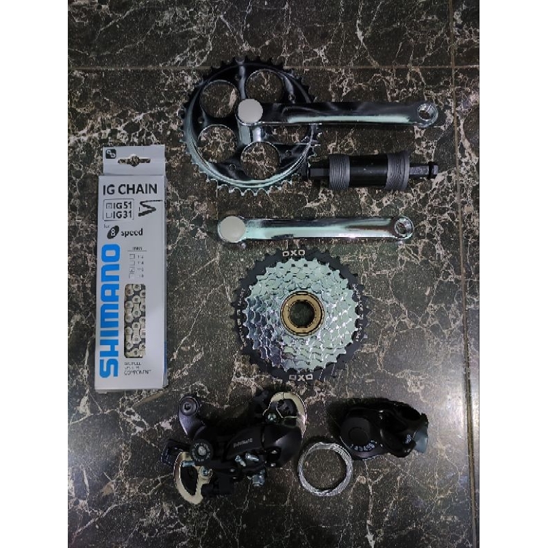 Groupset Shimano 6 7 8 9 Speed Altus M370 Alivio M4000 Ulir Drat Freewheel with Crankset Kotak Single Original Federal M