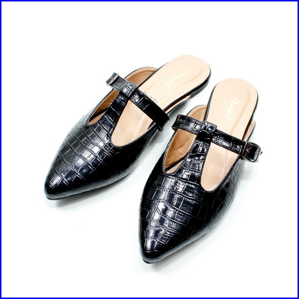 Heaves - Sepatu Flat Wanita Clarise Black Croco - Sepatu Flat Wanita Premium - Sepatu Big Size Wanita