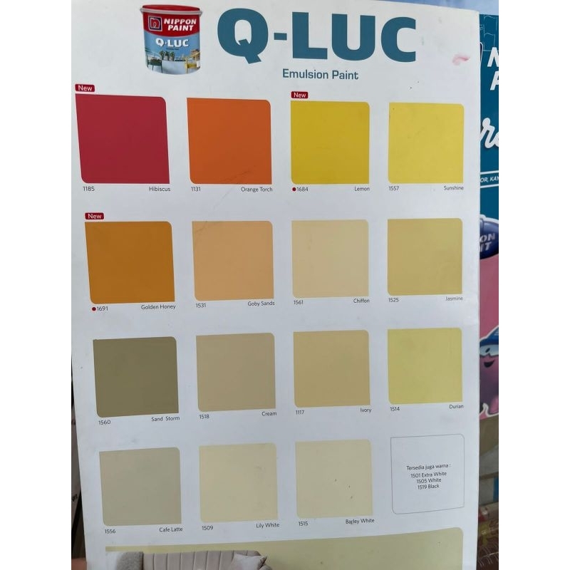 1117-Ivory, 1131-Orange Torch, 1154-Hijau Telor, 1185-Hibiscus, 1501-Extra White, 1503-Blue white, 1505-White, 1509-Lily White, 1514-Durian, 1515-Barley White, 1519-Black, 1523-Victoria, 1525-Jasmine, 1526-Blue Beauty, 1531-Goby Sand, 1533-Sky Blue, 1534-Marina, 1539-Lakestone, 1541-Atlantic, 1546-Lime Green, 1547-Swimming Blue, 1548-Stone Grey, 1549-Cooper Grey, 1550-Graycloth, 1552-Pink Possy, 1553-Lavender Print, 1554-Happy Fuchia, 1555-Peace Blue, 1556-Cafe Latte, 1557-Sunshine, 1560-Sand Storm, 1561-Chiffon, 1562-Candy Pink, 1657-Bright Green, 1671-Moon Glow, 1681D-Spring Vigor, 1684-Lemon, 1688-Real Morado, 1690-Clear Sky, 1691-Golden Honey, 1518-Cream, 1540 Green Farawey