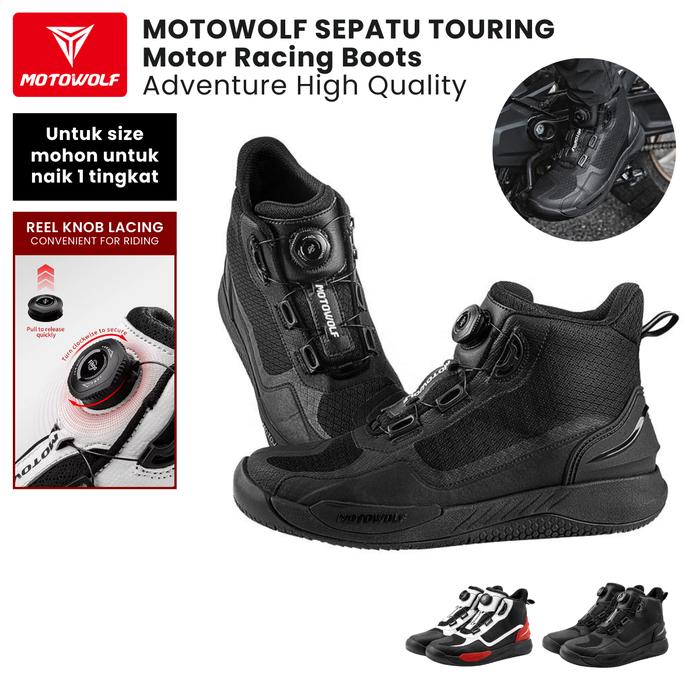 Sepatu Touring Motor Racing Motowolf Sunmori High Quality - Hitam - Black, Shoes Boots Pria