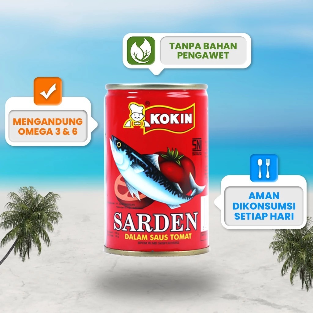 KOKIN Ikan Sarden Saus Tomat 425 gr Lauk Kaleng Instan Siap Tahan Lama Saji - 6 PCS