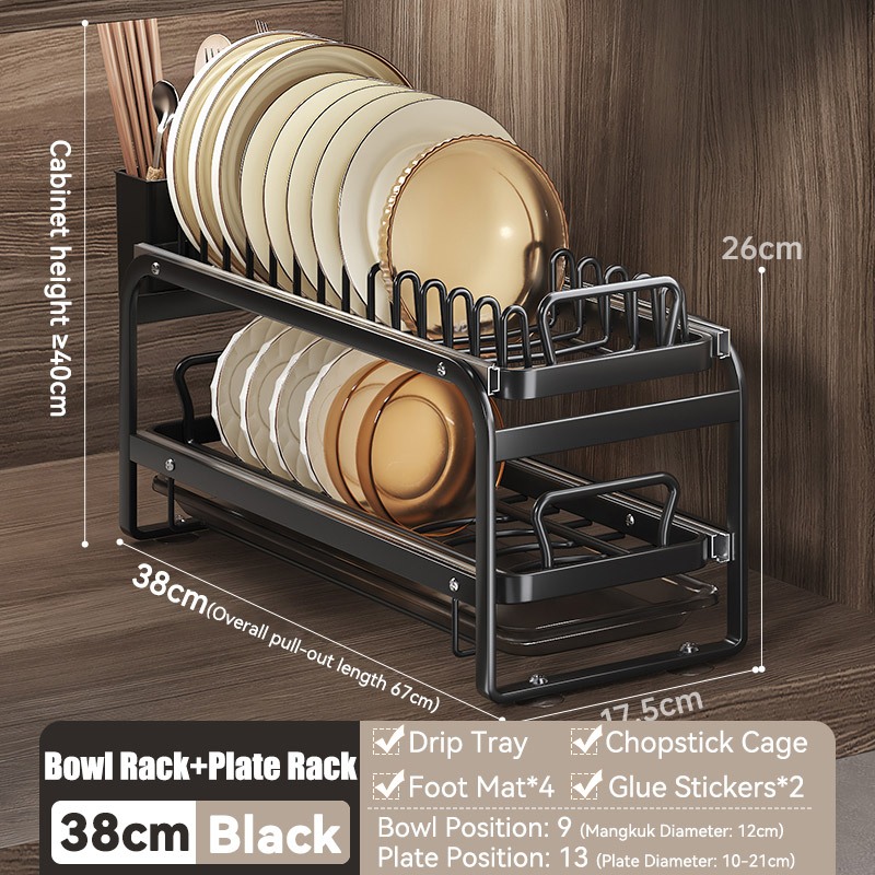 Rak Piring Pengering Piring Lemari Dapur Tarik Keluar Rak Piring Penyelenggara Rak Penyimpanan