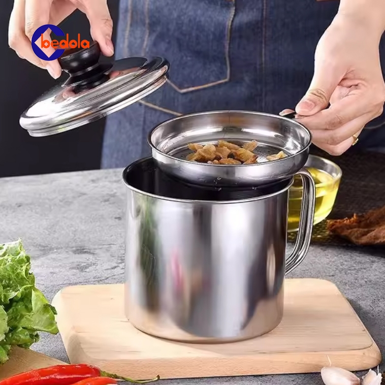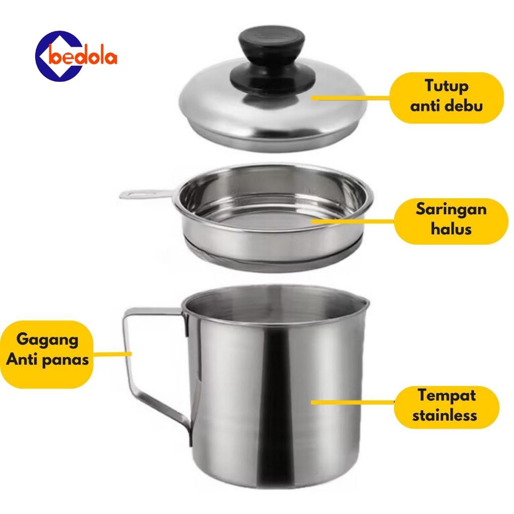 tempat saringan oil pot minyak bekas gogengan wadah penyaring minyak stainless steel