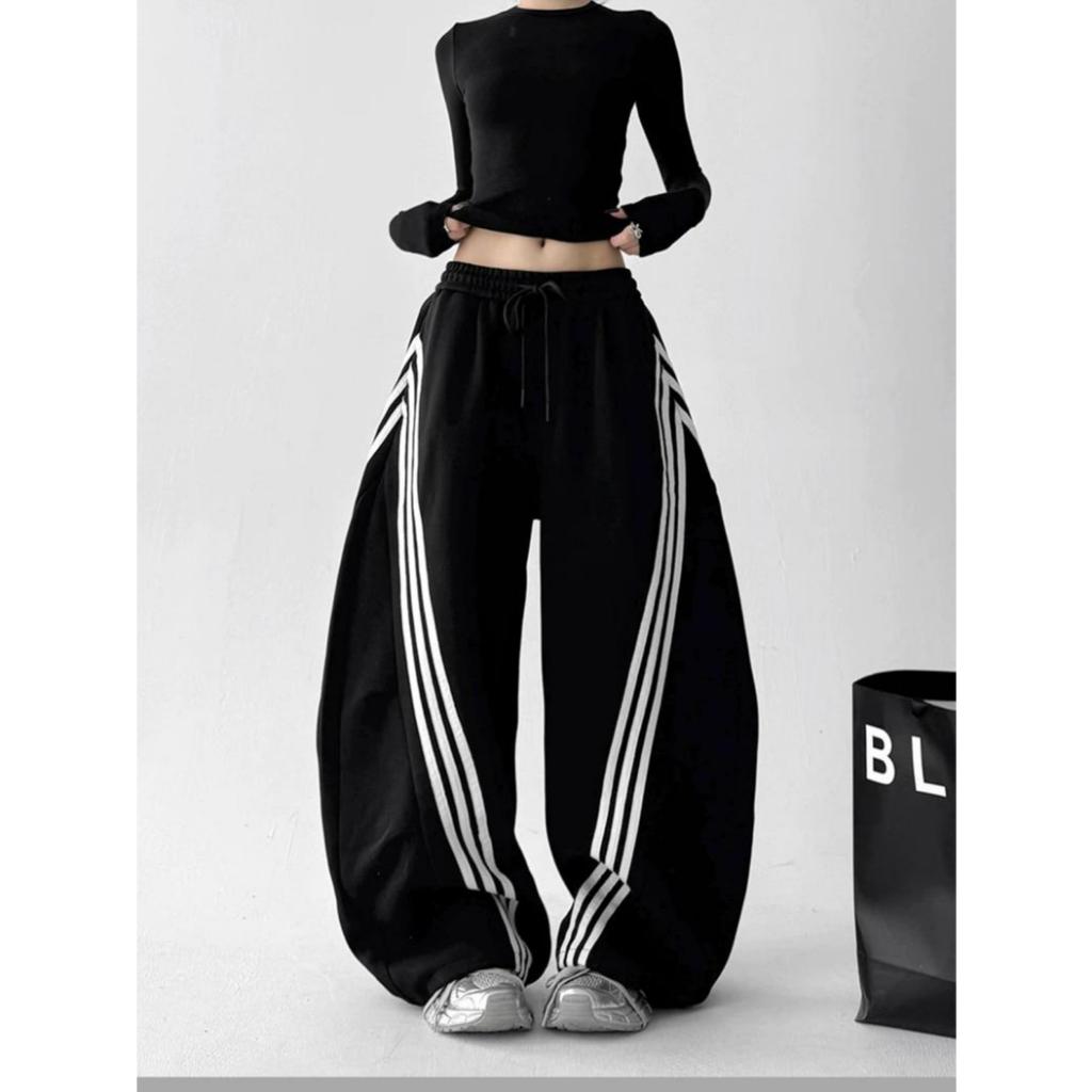 Celana Stripesd Unisex Sweatpants american retro kasual longgar