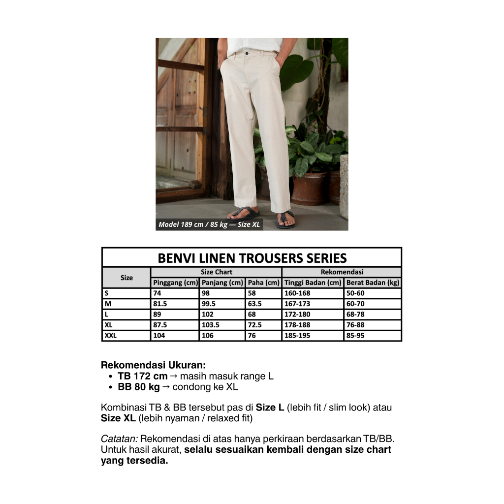 Tweltree Benvi Linen Trousers White - Celana Panjang Linen Pria Casual Premium Putih