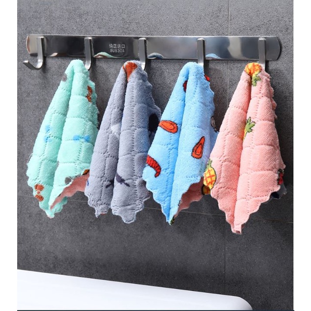 Kain Lap Dapur Serbaguna Bahan Coral Fleece 2 Sisi Serap Air Anti Minyak Motif Buah HI C562