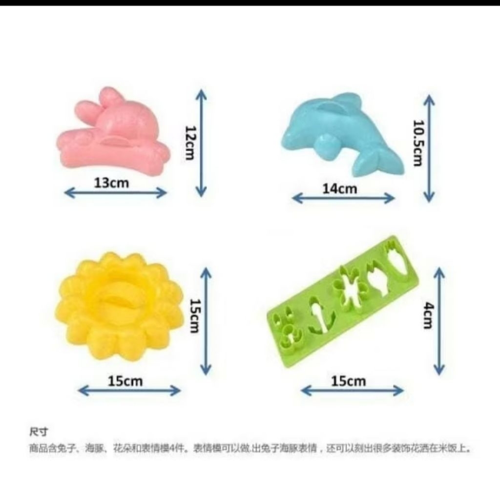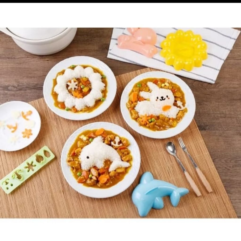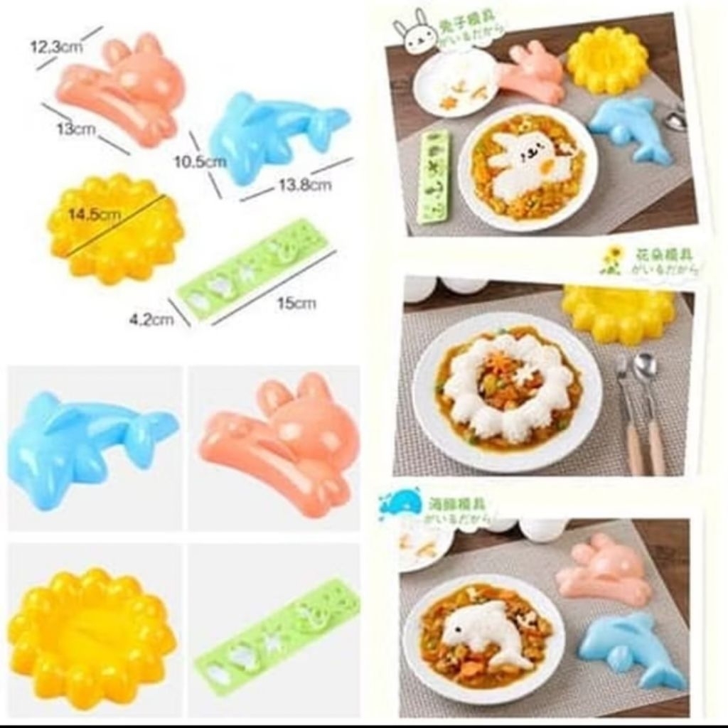 Cetakan Bento /Nasi /Puding Set Dolphin, Rabbit. Sunflower, & Decor