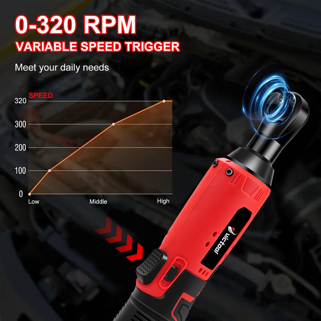 DEWIN Kunci Ratchet Elektrik Set 3/8" Kunci Ratchet Daya 320RPM Alat Kunci Ratcheting Lampu LED