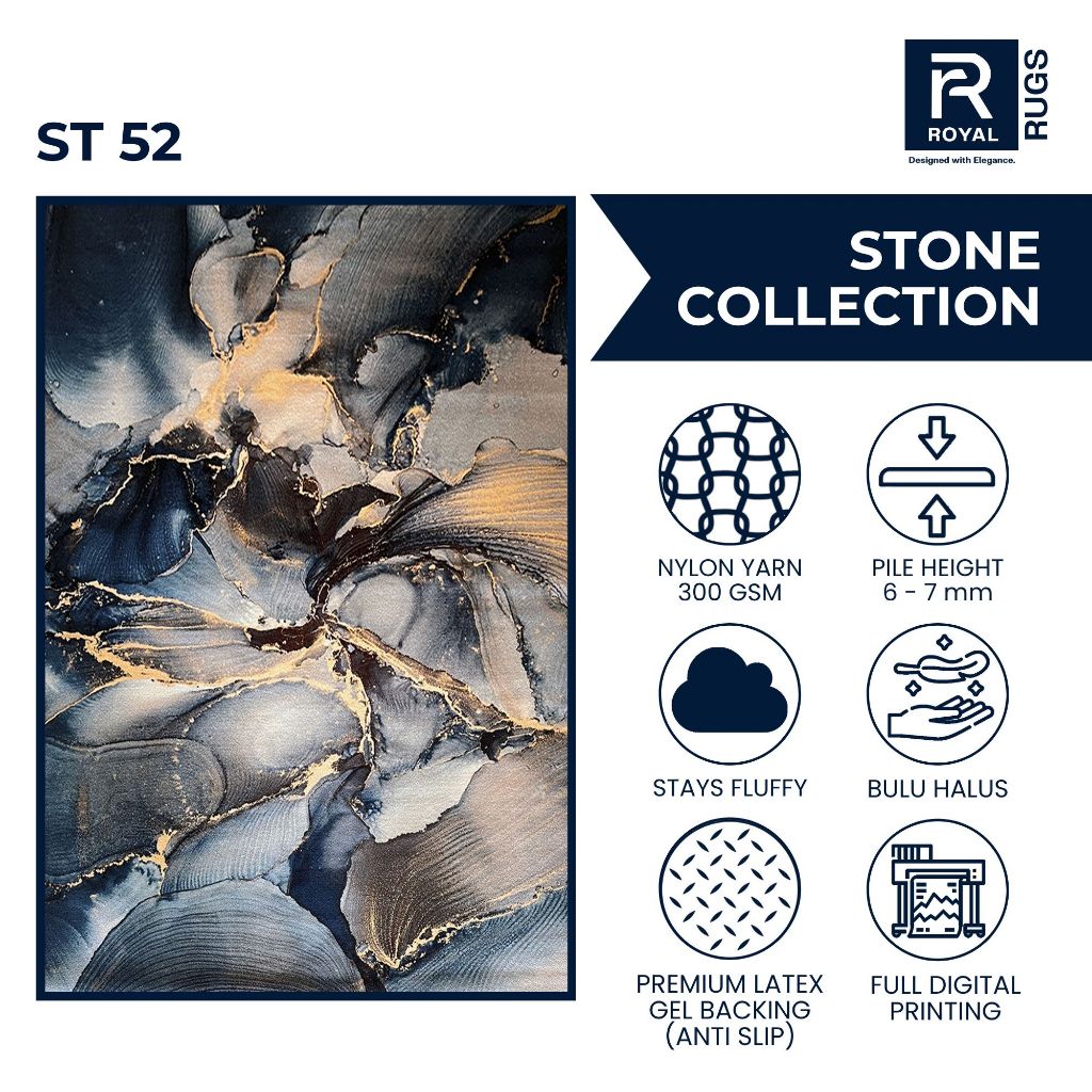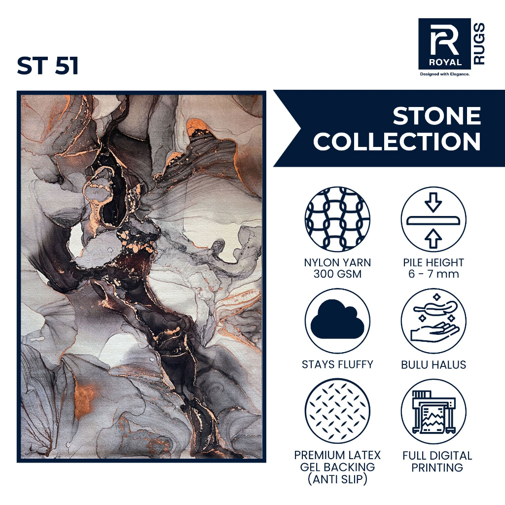 Karpet R Tamu Motif Stone 200x300 – Bulu Lembut, Estetik & Anti Slip Karpet Lantai Empuk