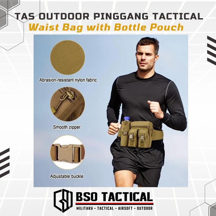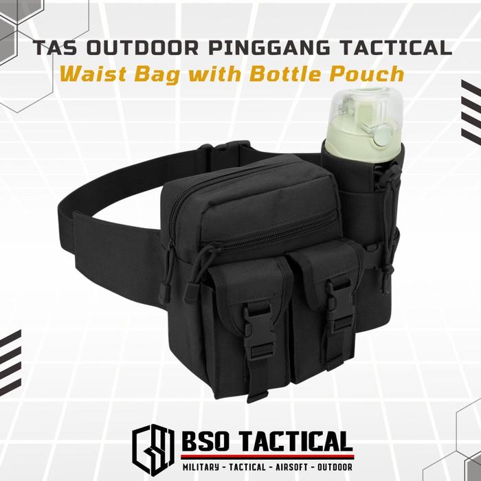 TAS OUTDOOR PINGGANG TACTICAL WAIST BAG WITH BOTTLE POUCH - BLACK