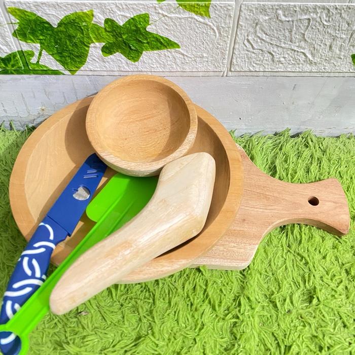 Paket Hemat Set Sambal Kumplit 6 Buah Cobek Talenan Kayu Pisau Buah dan Lemet - kichenware Dapur