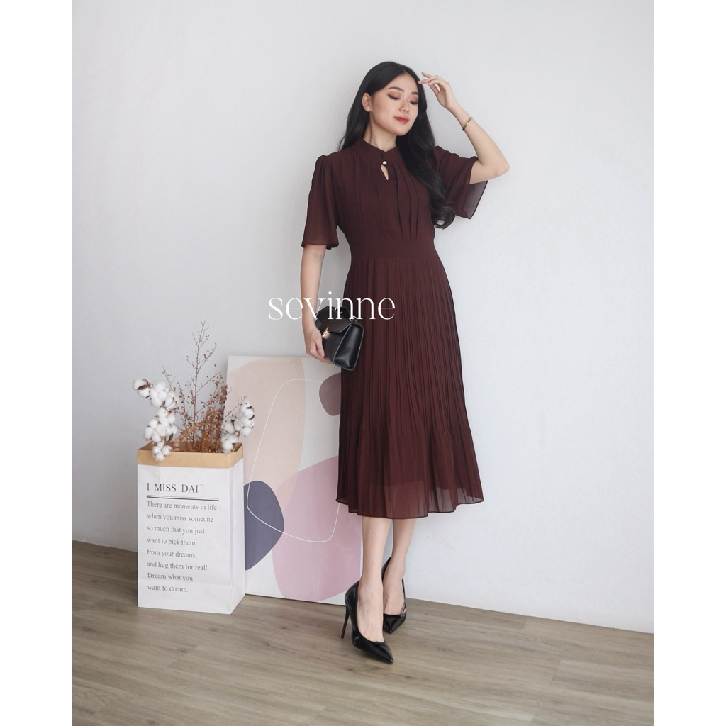 Sevinneclothing - ELEANOR Dress - Dress Korea - Midi Dress - Dress Bumil - Dress Plisket - Dress Pesta