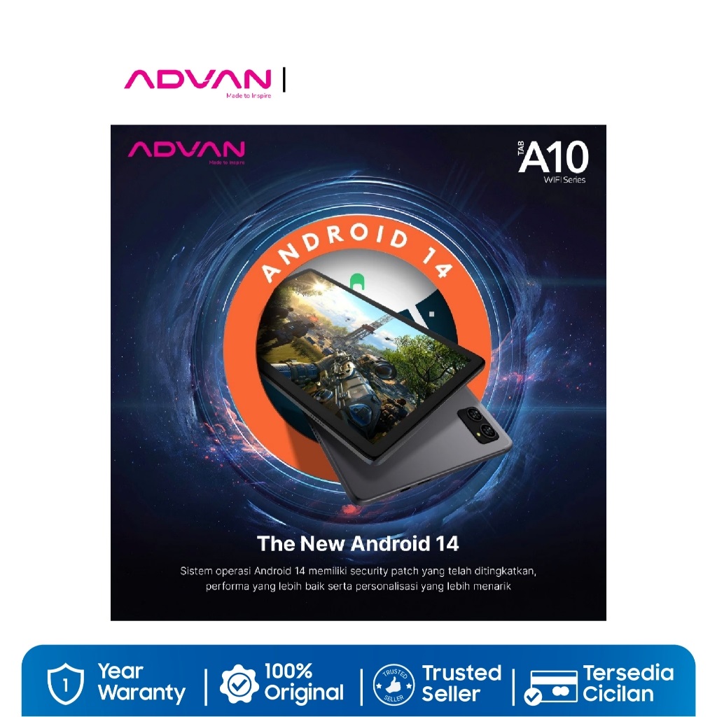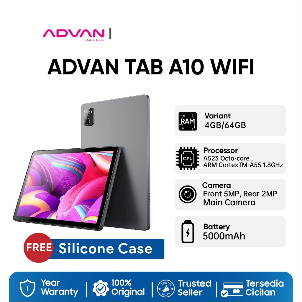 Advan Tab A10 WIFI 4GB/64GB 10.1'' IPS Screen Tablet 5000mAh Andorid 14 - Garansi Resmi 1 Tahun