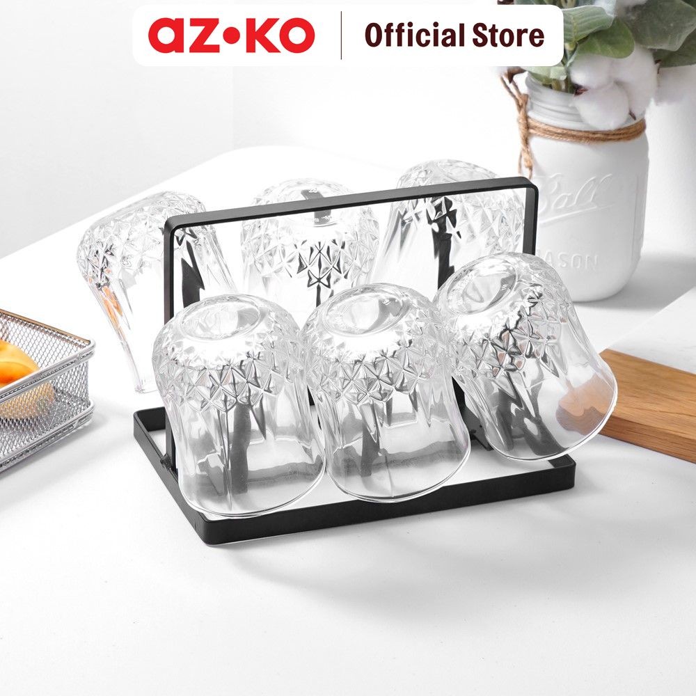 AZKO Delicia 180 ml Set 6 Pcs Gelas Dengan Rak - Hitam Cup Wadah Peralatan Minum Grade Drinkware