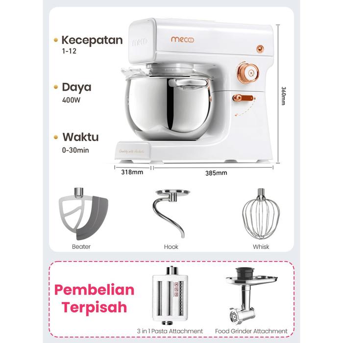 Mecoo Aesthetic Premium Stand Mixer Smart LED 6 Liter Silent Motor Ultra Stable