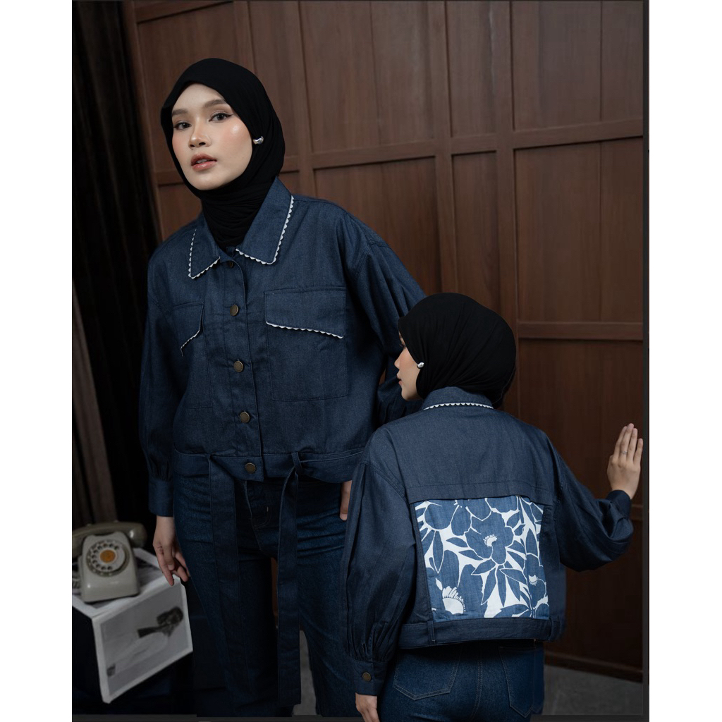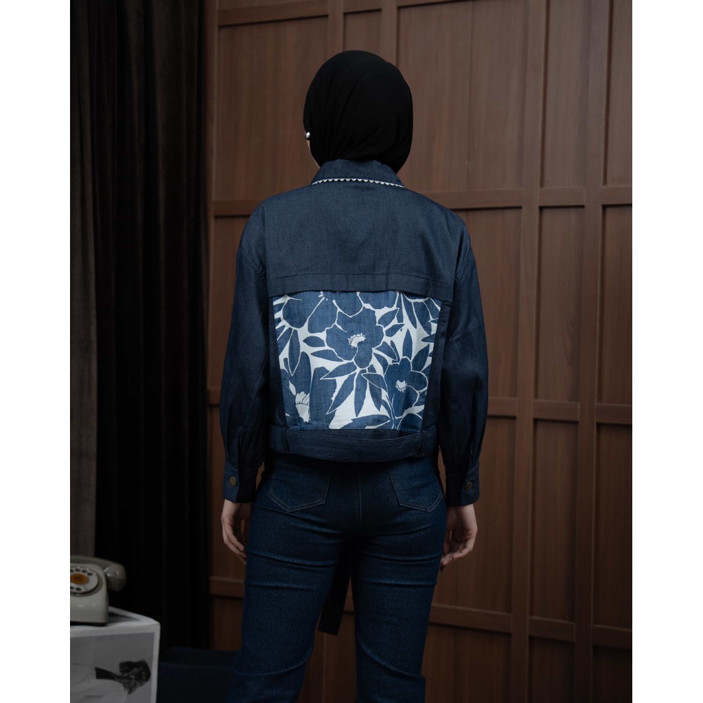 Mayoutfit Stoney Outer | Jaket Denim Crop Outer Wanita Kombi Motif Floral