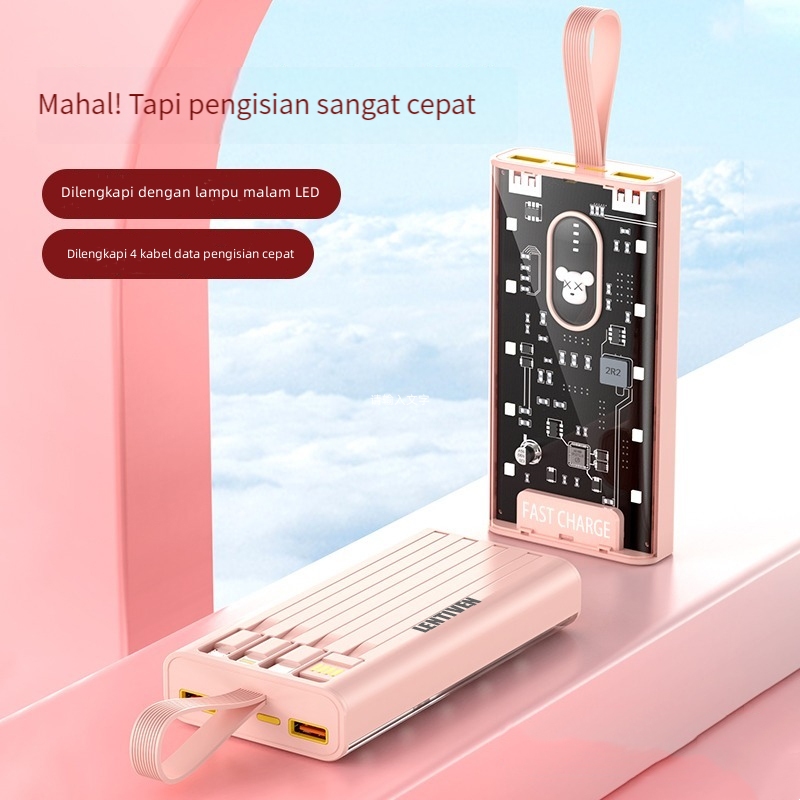 LENTIVEN Powerbank 30000 mAh 4 Kabel Cute LED Portable Fast Charger