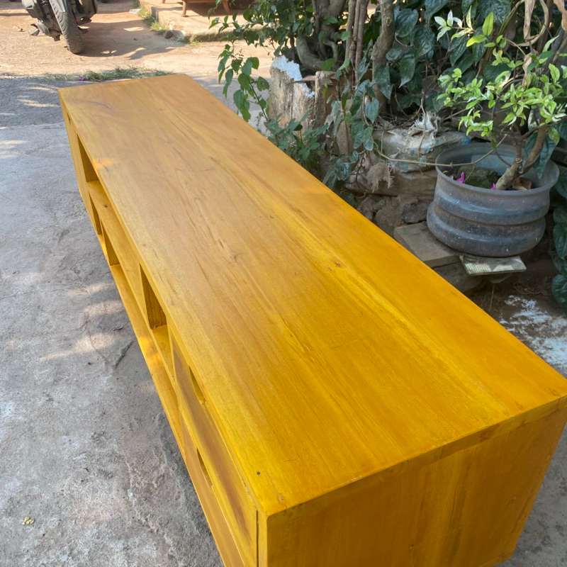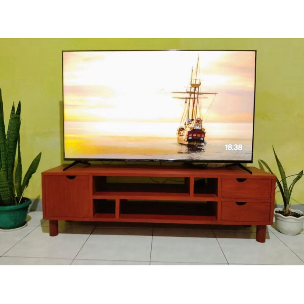 Meja TV Minimalis Modern Kayu Mahoni 140cm Kokoh
