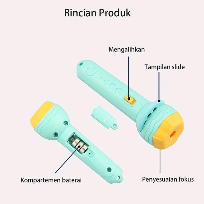 Mainan Anak Lampu Senter Proyektor Gambar Edukasi Toys Plastik - Hijau 2 Slide