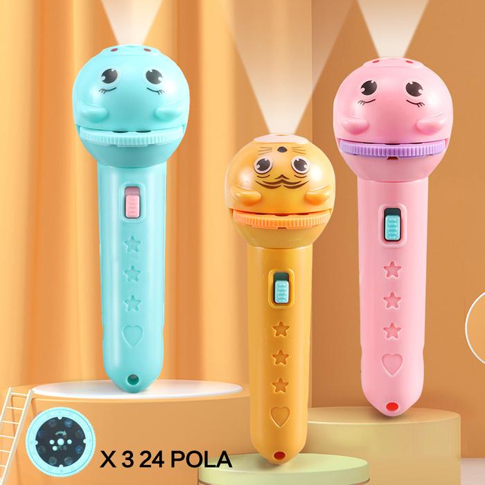 Mainan Anak Senter Proyektor / Fun Flashlight / Mainan Proyektor Gambar / Mainan Edukasi - Pink