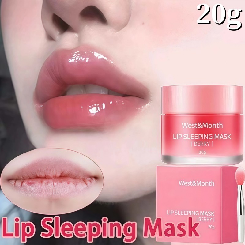Masker Bibir Tidur West&Month Serum Pengelupasan Bibir Lipstik Merah Muda Alami Permanen Pemutih Bibir Bibir Pecah-pecah