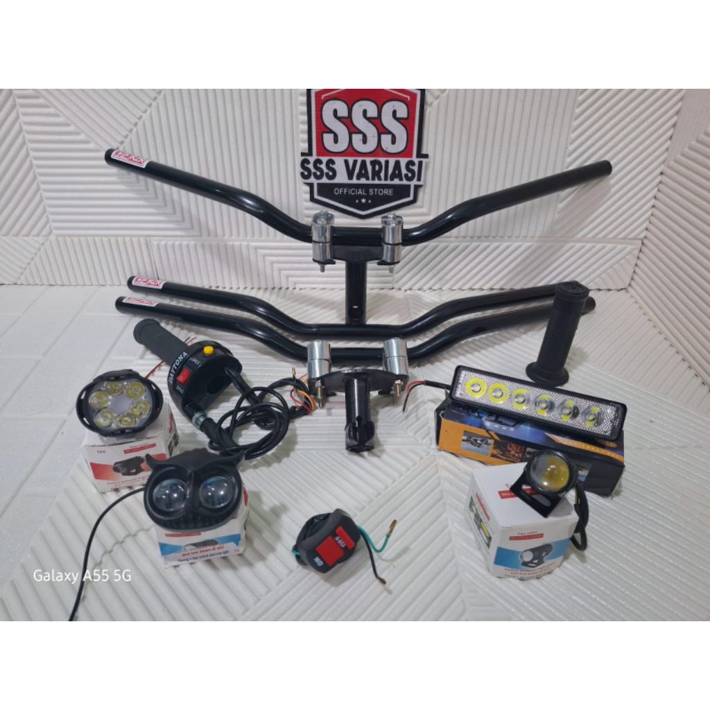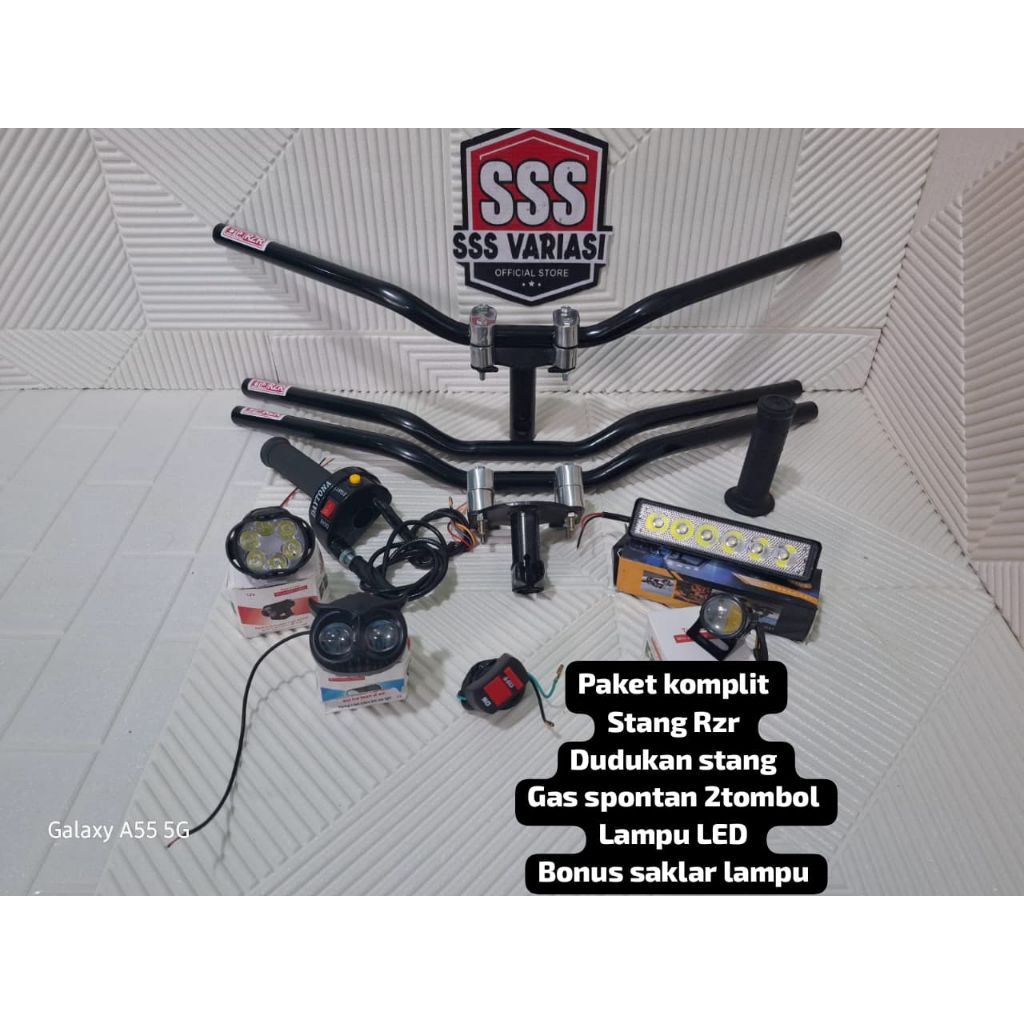 Paket komplit stang Rzr+Dudukan stang+gas spontan 2tombol+lampu LED bonus saklar lampu