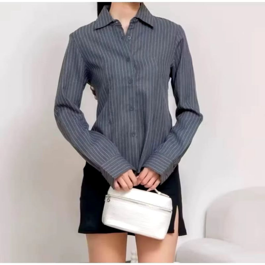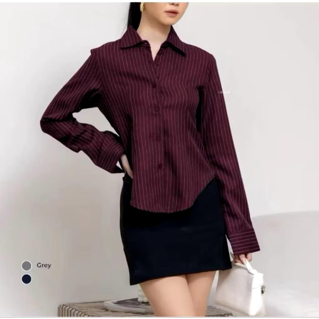 Luna Stripe Long Sleeve / Kemeja Fitted Stripe Wanita / Atasan Wanita Wispie Kekinian