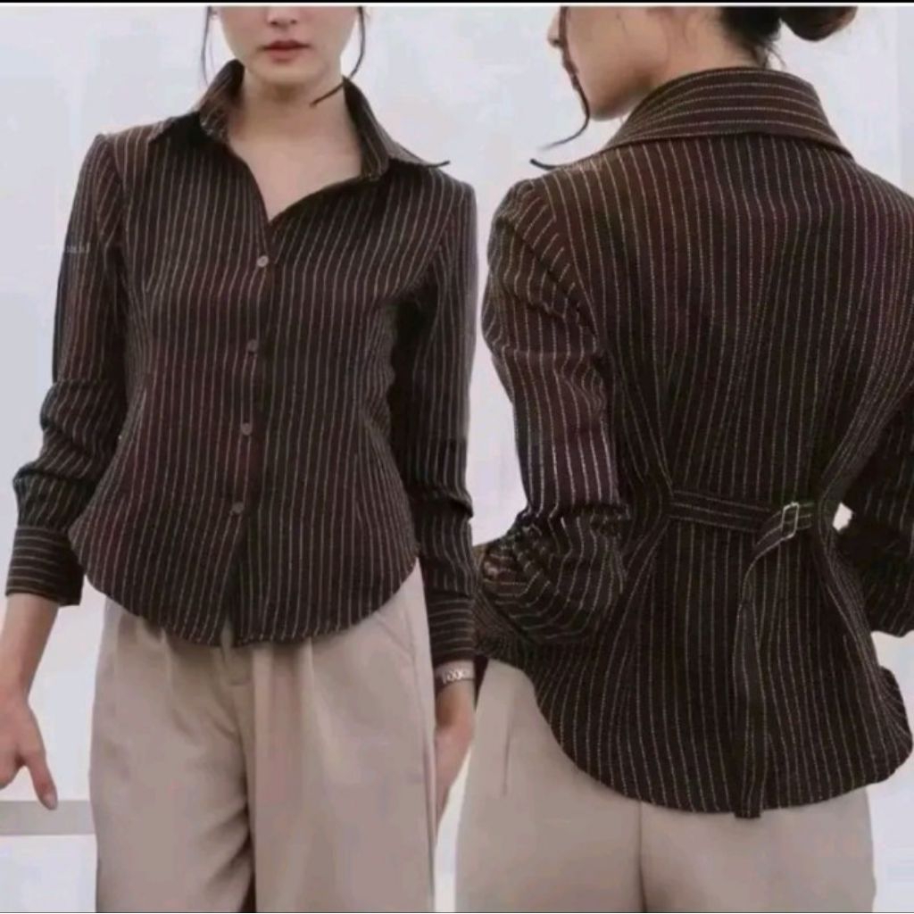 Luna Strip Fitted Shirt Kemeja Wanita Salur Garis Long Sleeve Slim fit Boddy - Atasan Kemeja Wispie Wanita Basic Casual
