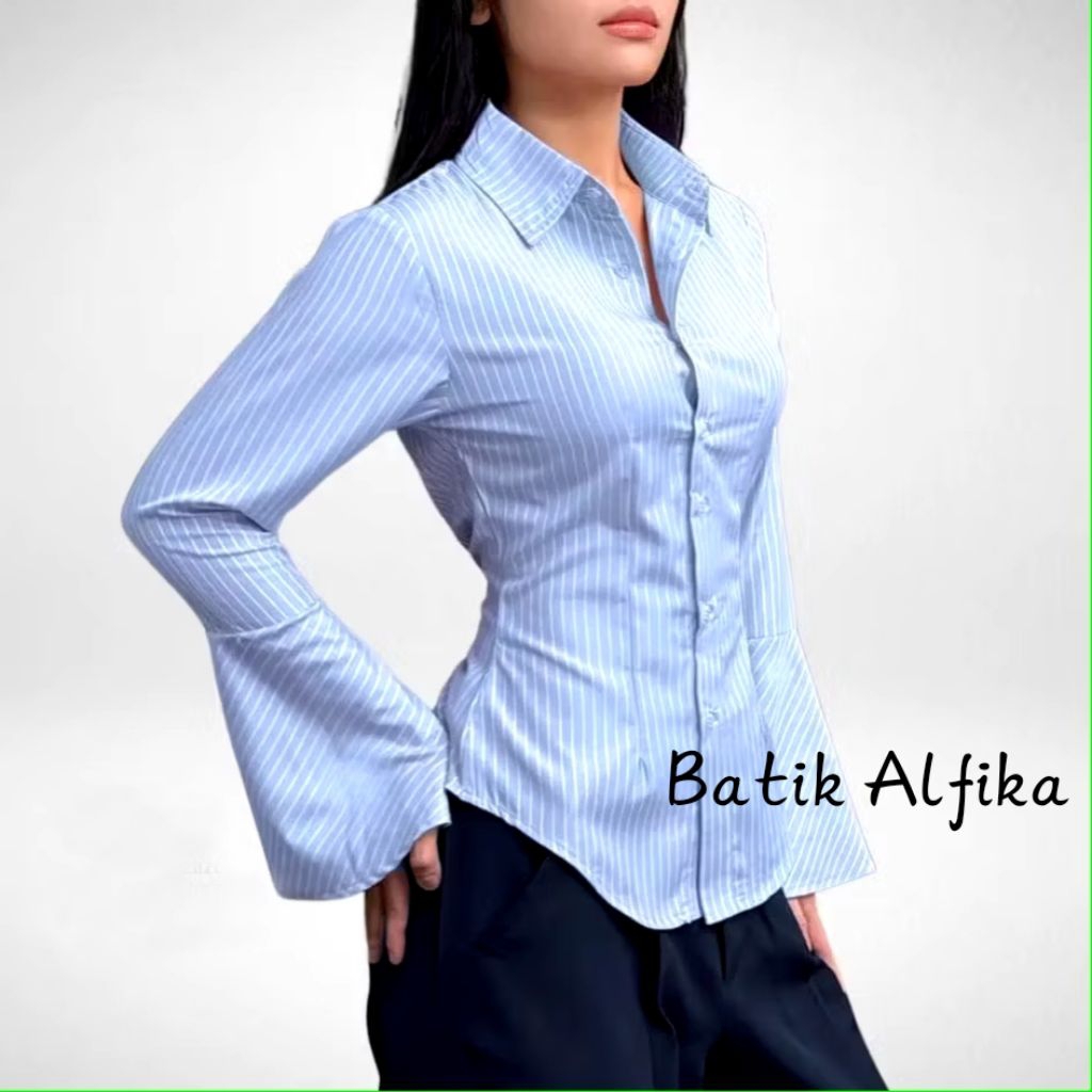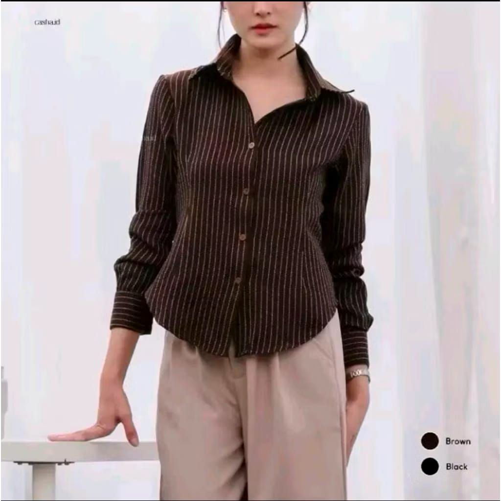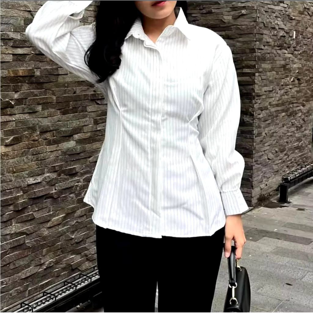 Kemeja Atasan Wanita Motif Salur Garis Stripe - Kemeja Wispie Stripe Fitted - Luna stripe Kemeja Wanita Fitted Slim fi