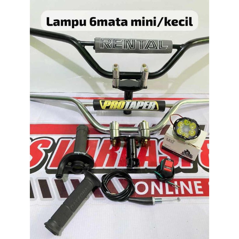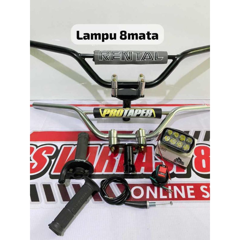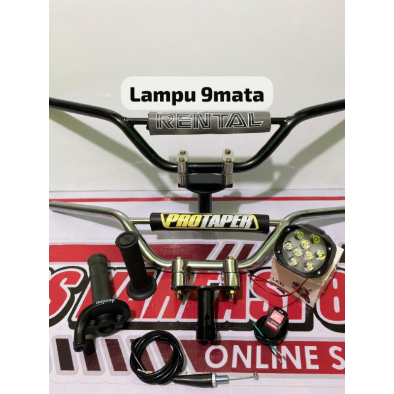 STANG TRAIL paketan stang trail+adaptor stang+gas spontan polos besi import+lampu tembak LED=√GRATIS SAKLAR LAMPU...
