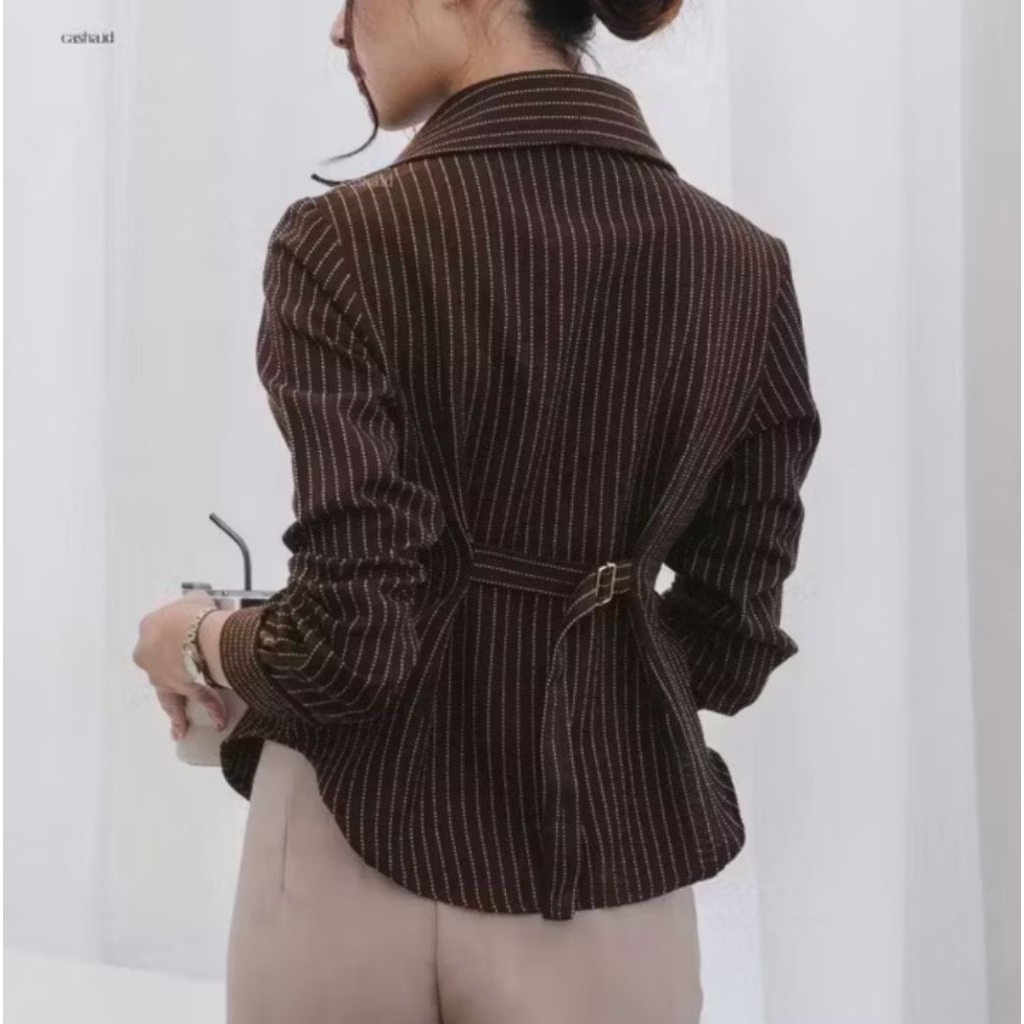 Luna kemeja strip fitted semi woll | atasan wanita whispie kantor
