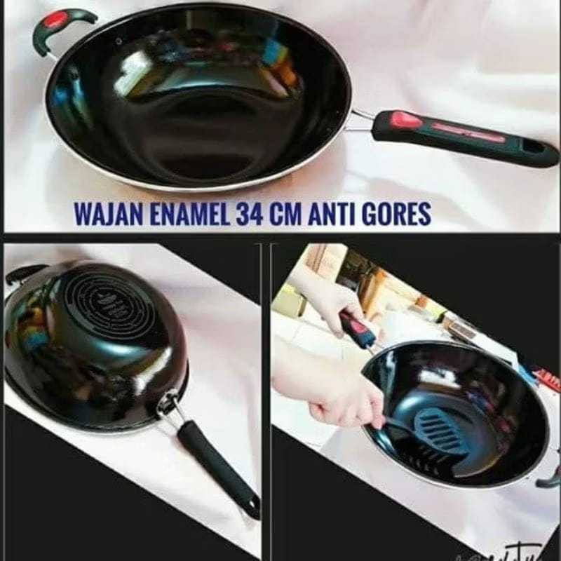 Wajan Penggorengan Enamel 34cm Frying Pan / Terbaik