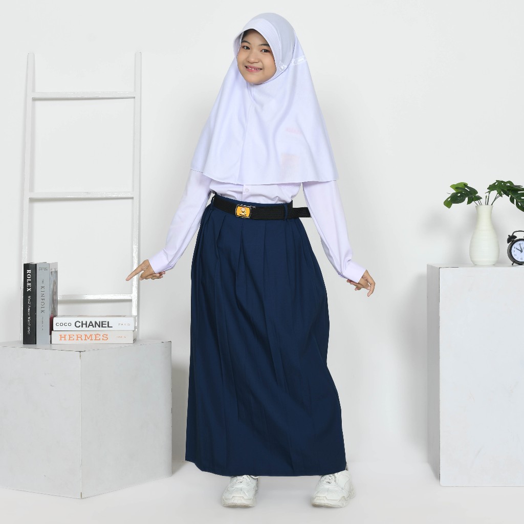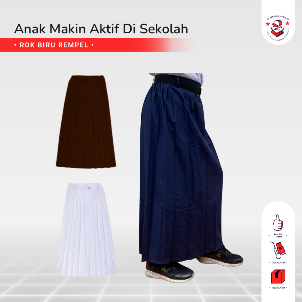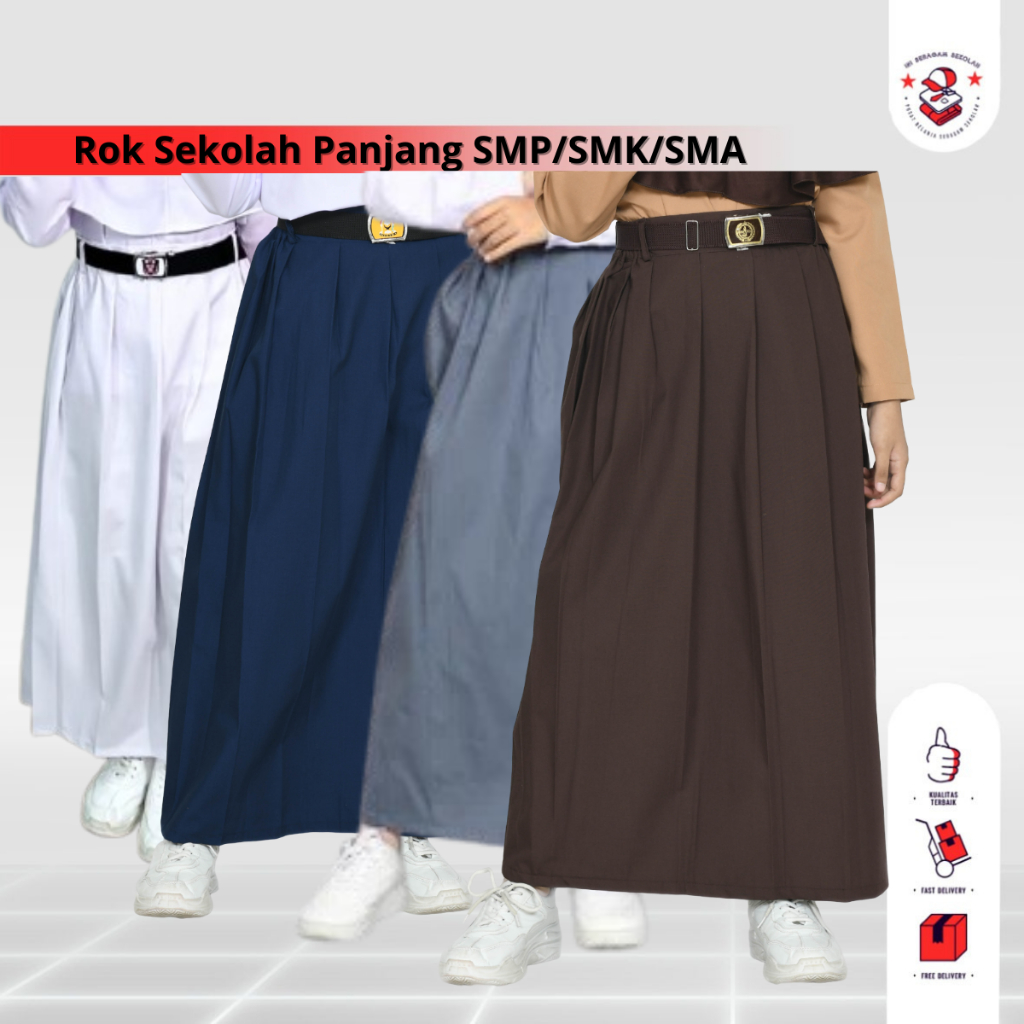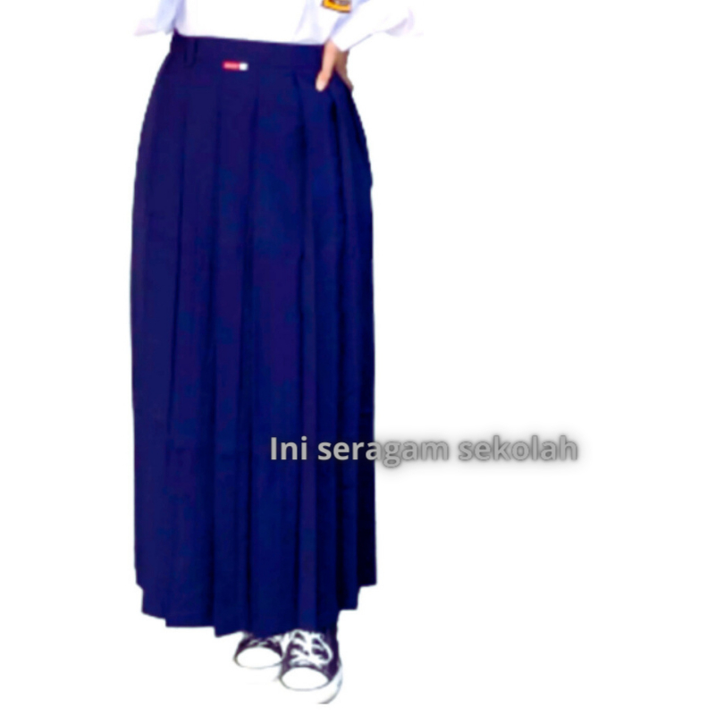 Seragam Sekolah SMP SMA SMK Rok Rempel Panjang Pinggang Karet Warna Biru Putih Coklat Pramuka cewek