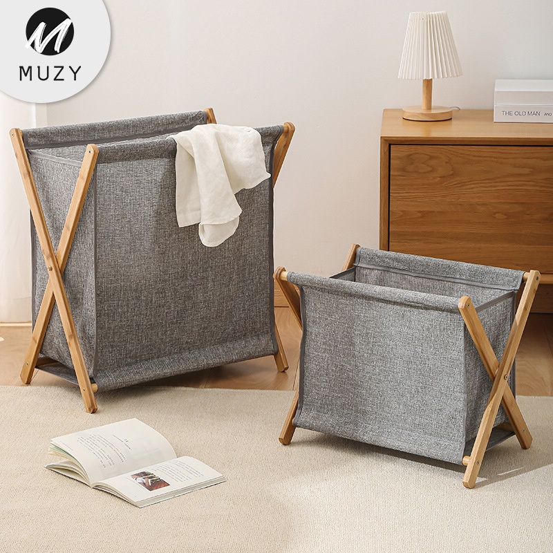 Muzy Keranjang Pakaian Kotor Laundry Bag Lipat Tempat Baju Kotor dengan Stand Kayu Basket Storage Baju Tempat Cucian Ker