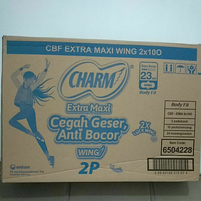 pembalut charm kartonan charm bodyfit 23cm isi 2pads extra maxi wings