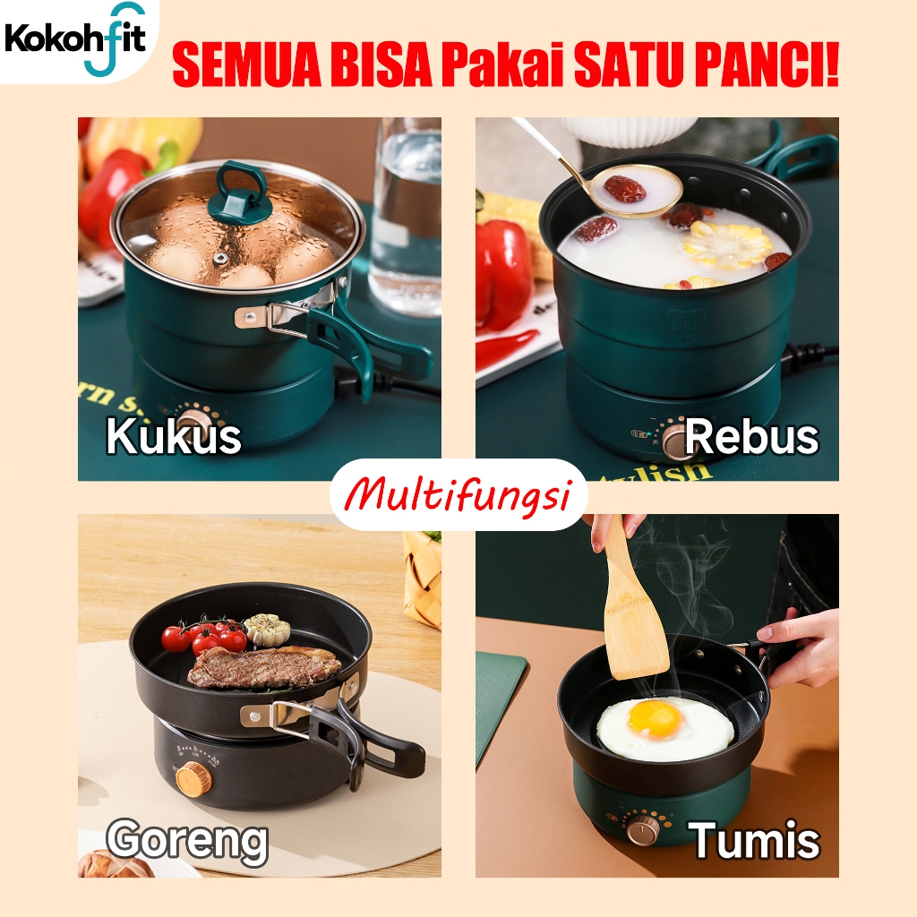 Kokohfit Panci Listrik Lipat Portabel 2.2L - Kompor Multifungsi Pemanggang & Kukusan 500W / 800W 2 Power - Low Watt Ren