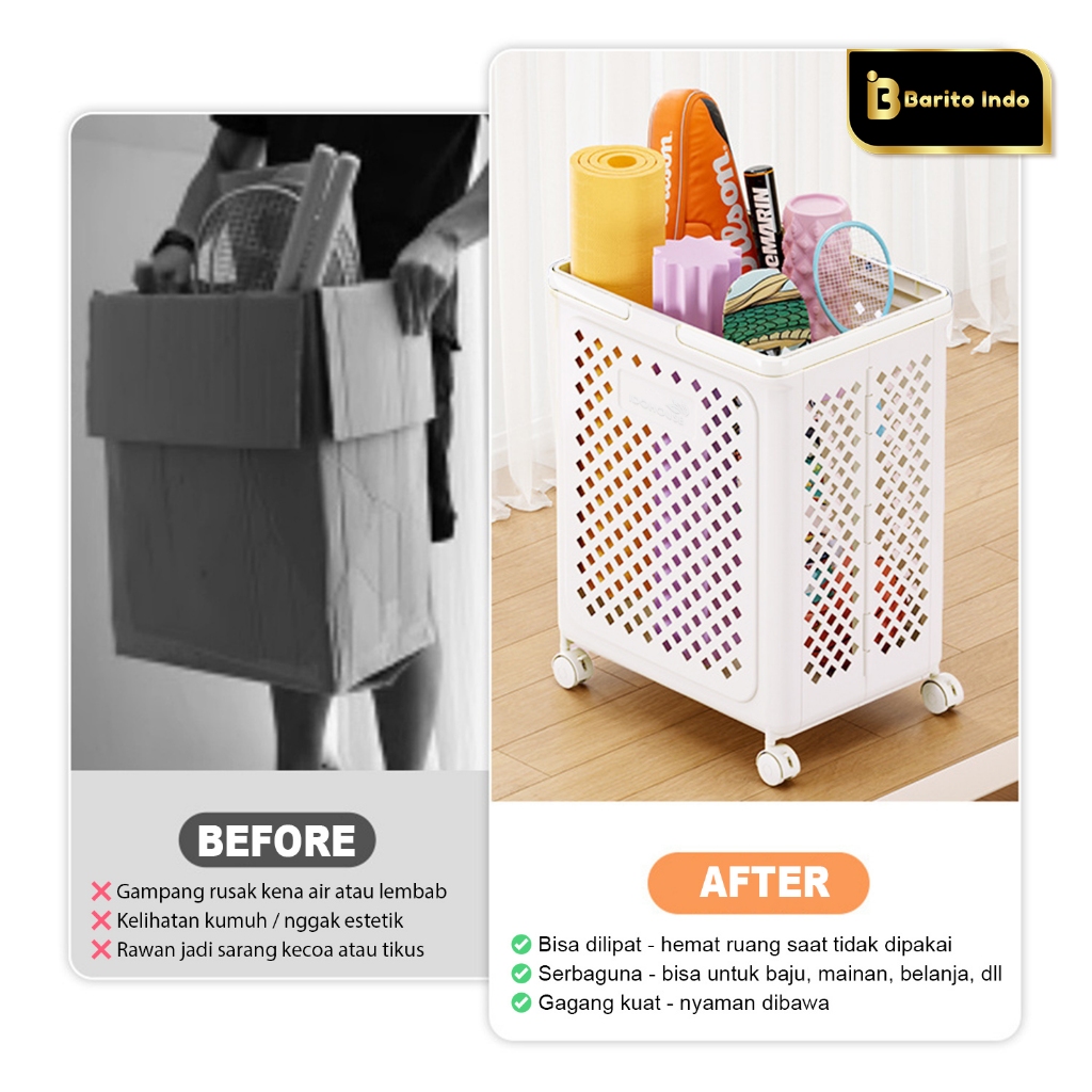 BARITOINDO Keranjang Lipat Baju Kotor Roda Hemat Tempat Praktis Laundry Pakaian - D01A/D01B
