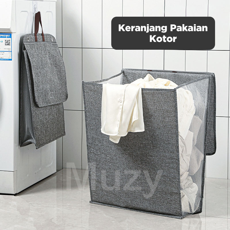 Muzy Keranjang Gantungan Baju Kotor Laundry Bag Keranjang Pakaian Kotor Tutup Lipat Kerangjang Lipat Serbaguna HSB312