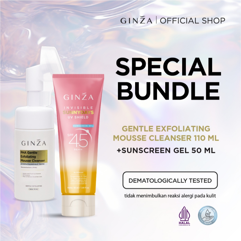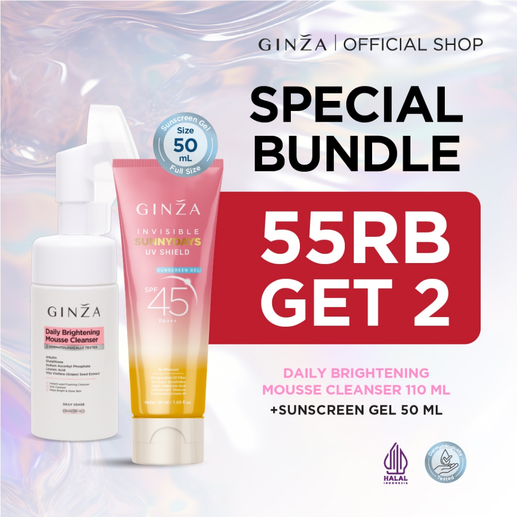 Wash & Glow| Ginza Mousse Cleanser - Pembersih Muka + Ginza Invisibe Sunscreen 50ml SPF 45++