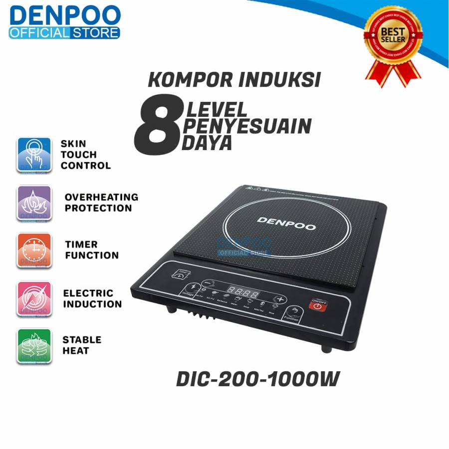 DENPOO Kompor Listrik Induction Cooker Push Button Low Watt DIC 200-1000