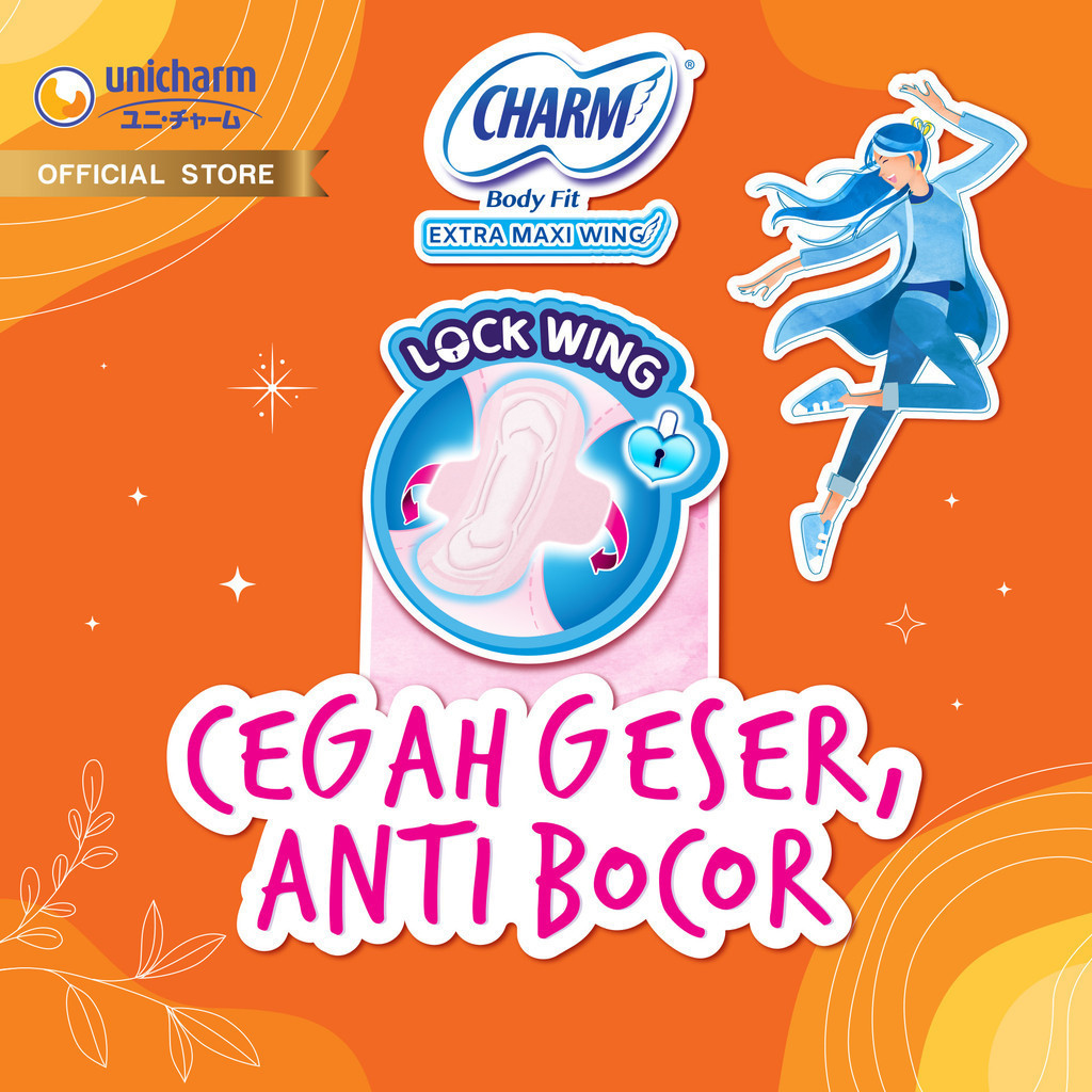 Charm Pembalut Body Fit Extra Maxi 23cm Wing 28 pads - 3 Packs