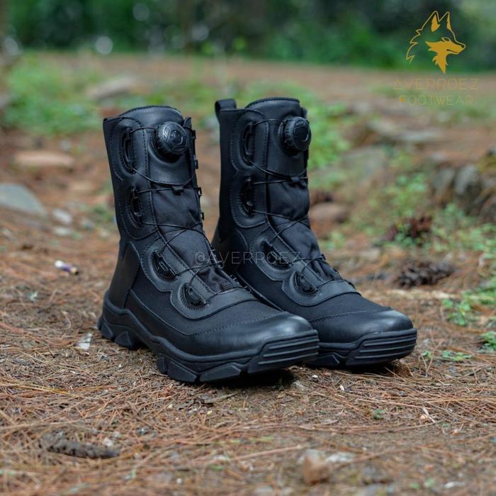 Sepatu PDL Tali Putar TNI Polri Satpam Security Model Mortal Kulit Sapi Asli Hitam Dop - Boots,