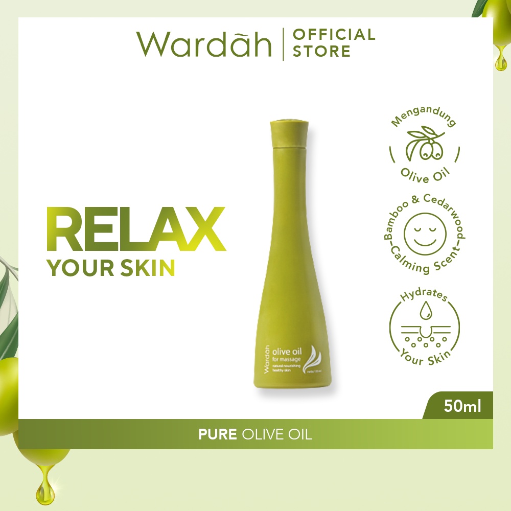 WARDAH Pure Olive Oil 50 ml - Oil Multifungsi Untuk Wajah Lembap dan Relaks - Dilengkapi dengan Bamboo dan Cedarwood - T