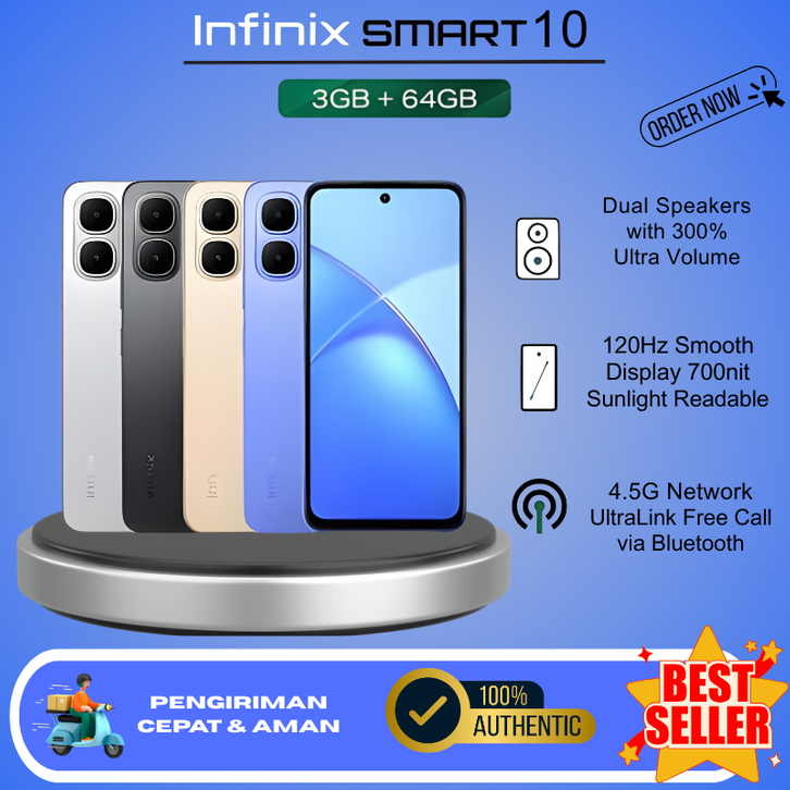 Infinix Smart 10 3/64GB - HP Murah RAM 3GB ROM 64GB | Layar Besar 6.67 inch 120Hz HD+ & Baterai Awet - Processor T7250