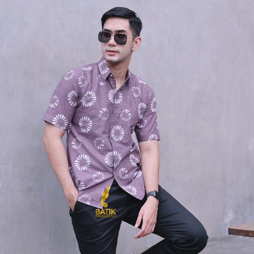 ASTA SIBORI KEMEJA BATIK PRIA LENGAN PENDEK SLIMFIT KATUN PRINTING HEM BAJU SERAGAM KANTOR MODERN