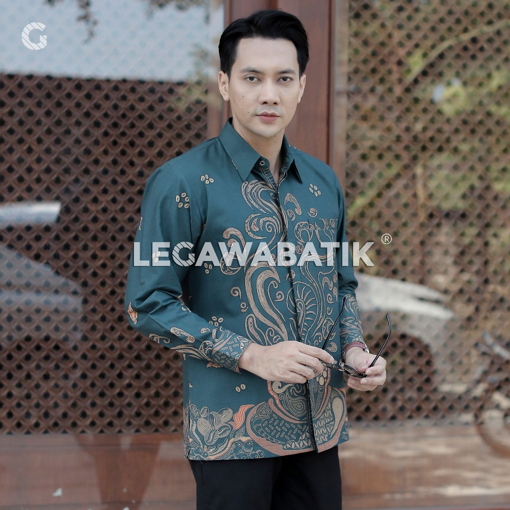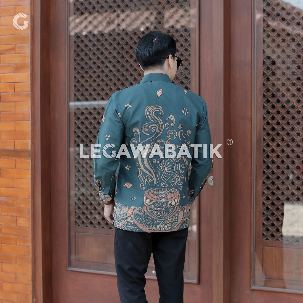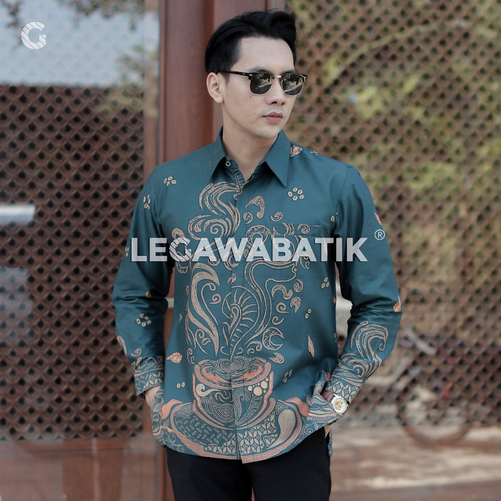 Kemeja Batik Pria Lengan Panjang Premium - Motif Kopi Warna Hijau Tosca - Batik Modern - Legawabatik