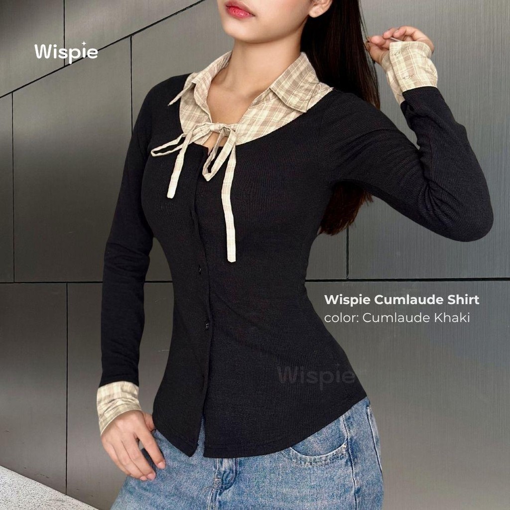 Wispie Cumlaude Top | Atasan Kemeja Kaos Wanita Kotak Gingham Rib Hitam