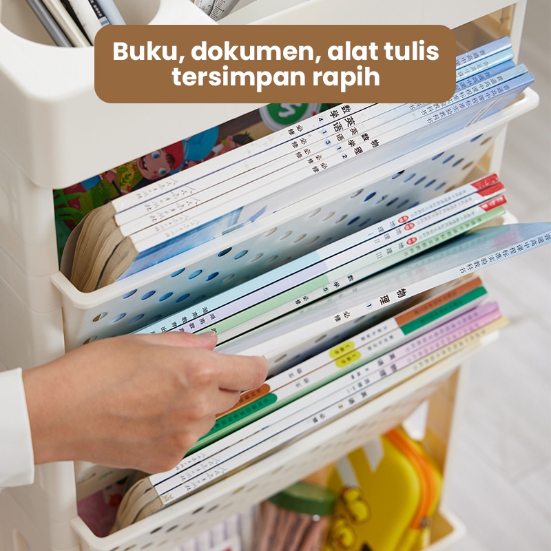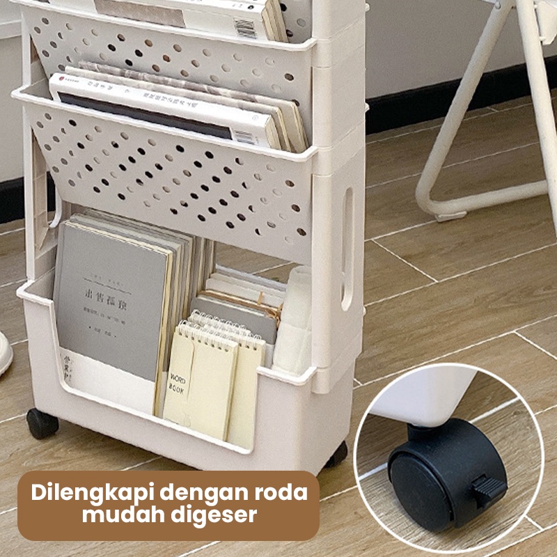 Muzy Rak Penyimpanan Buku/ Koran / Majalah Rak Buku Roda Rak Dapur Serbaguna Rak Susun Roda HSB634